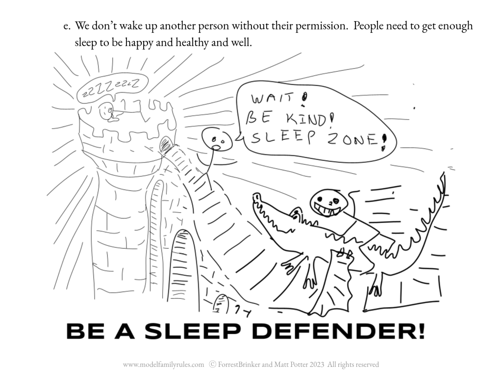June 6, 2023June 1, 2023 by forrest Rule 3. We use consent. Part e. Illustration Model Family Rules consent, family, familyrules, rules, sleep, sleepzone Leave a comment We don’t wake up another person without their permission. People need to get enough sleep to be happy and healthy and well.
