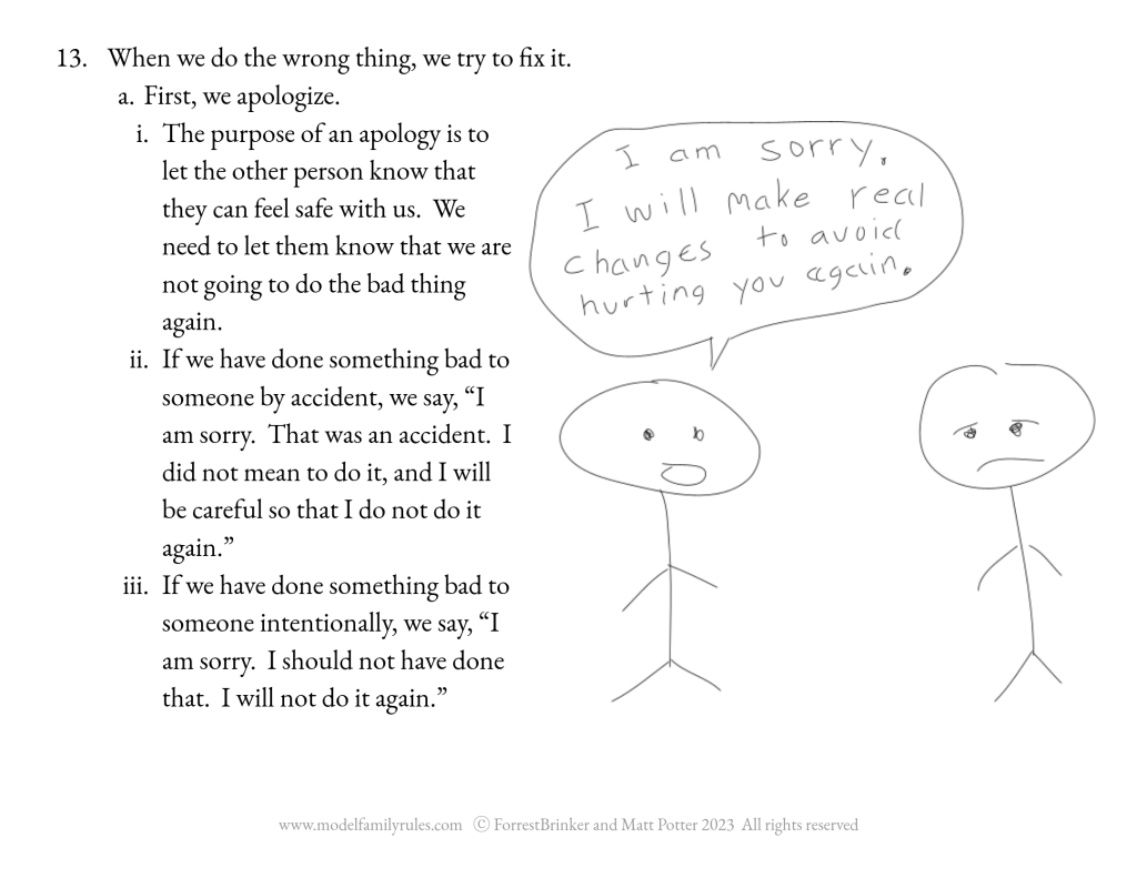 The purpose of an apology is to let the other person know that they can feel safe with us. We need to let them know that we are not going to do the bad thing again.