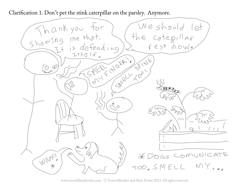 Clarification 1. Don’t pet the stink caterpillar on the parsley. Anymore.