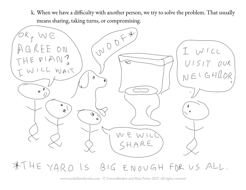 When we have a difficulty with another person, we try to solve the problem. That usually means sharing, taking turns, or compromising.