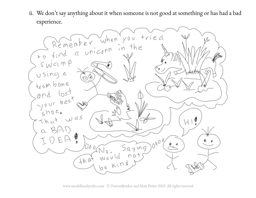 We don’t say anything about it when someone is not good at something or has had a bad experience.