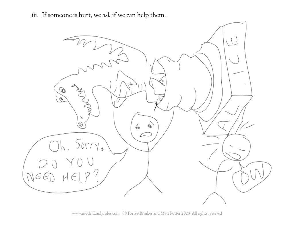 If someone is hurt, we ask if we can help them.