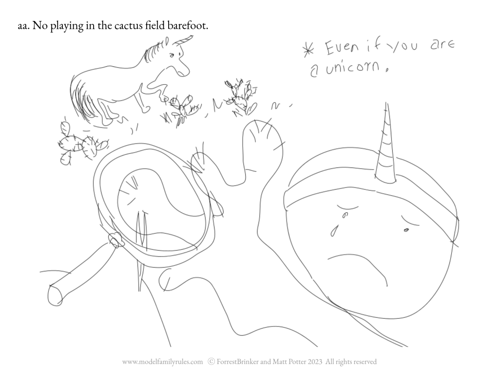 *This rule is not part of the standard Model Family Rules. It is in the extended set of Oddly Specific But Necessary rules that we or our friends needed to make. What oddly specific rules have you had to make?